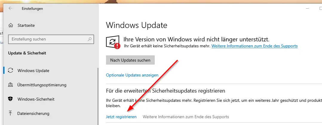 Windows 10, kostenlose Sicherheitsupdates für ein weiteres Jahr aktivieren. Kostenlos.