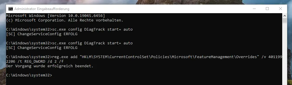 sc.exe config DiagTrack start= auto
