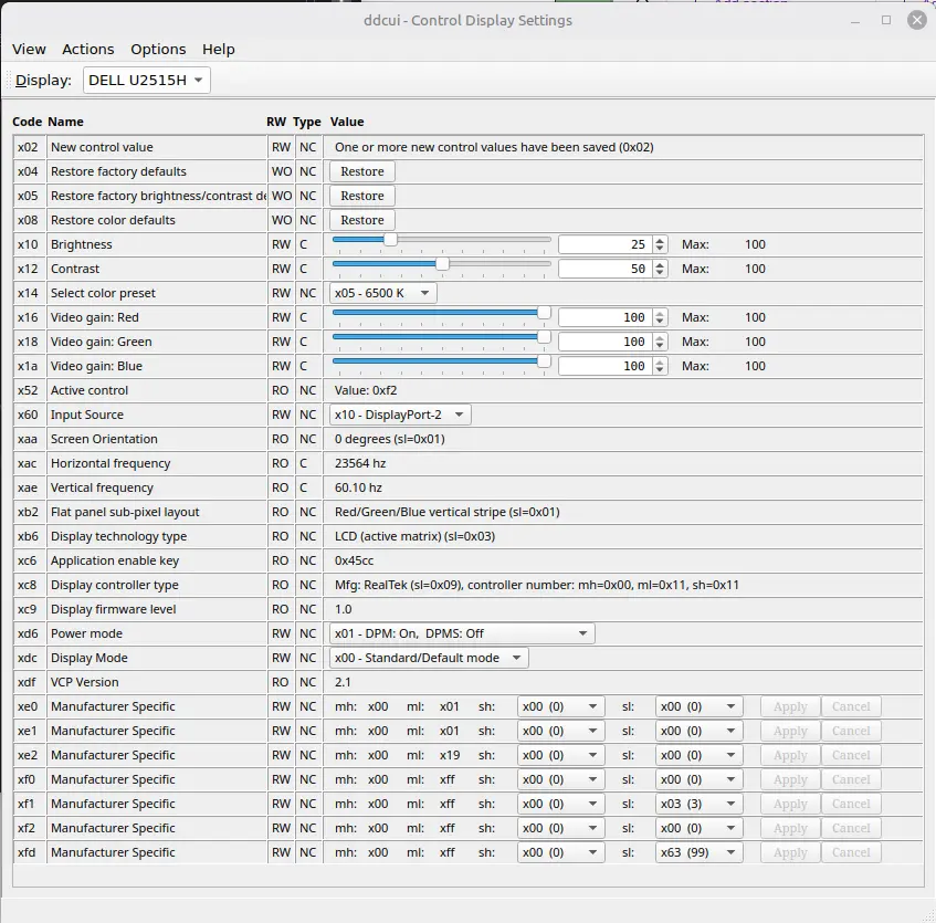 Linux-Alternative zu Monitorian: „ddcutil“ und „ddcui“.