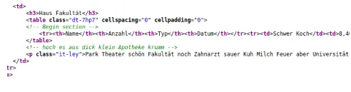 Ein Blick in den Quelltext der HTML-Seite, offenbart noch etwas seltsamen Text am Ende, dieser ist in der normalen Ansicht nicht sichtbar.