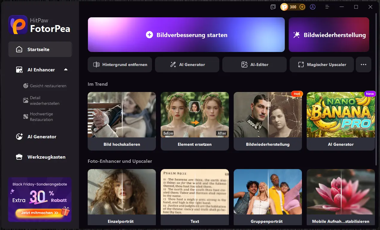 Künstliche Intelligenz hält in vielen Bereichen Einzug – auch in der Bildbearbeitung. Programme versprechen, alte Aufnahmen zu retten, Bilder zu verbessern oder sogar komplett neue Motive zu erzeugen. HitPaw FotorPea gehört zu dieser Kategorie und kombiniert klassische Bildbearbeitungsfunktionen mit KI-Features. In diesem Artikel geht es um einen Praxis-Test der Software.