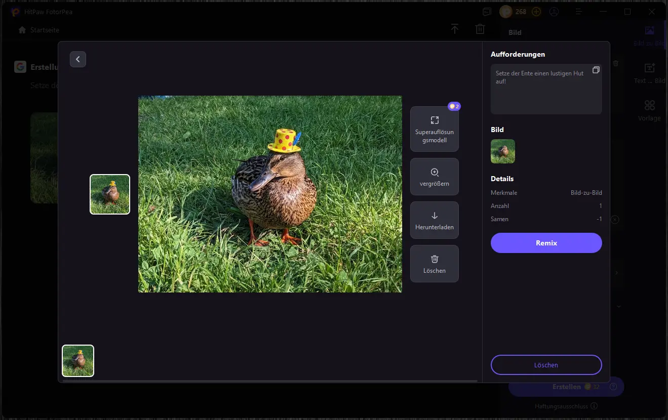 Aus einfachen Textbeschreibungen erstellt HitPaw FotorPea neue Bilder. Die Motive eignen sich vor allem als kreative Ideenquelle oder für Social-Media-Grafiken. Für pixelgenaue Grafiken oder professionelle Layouts sind die Ergebnisse nicht in jedem Fall präzise genug, können aber als schnelle Grundlage dienen.
