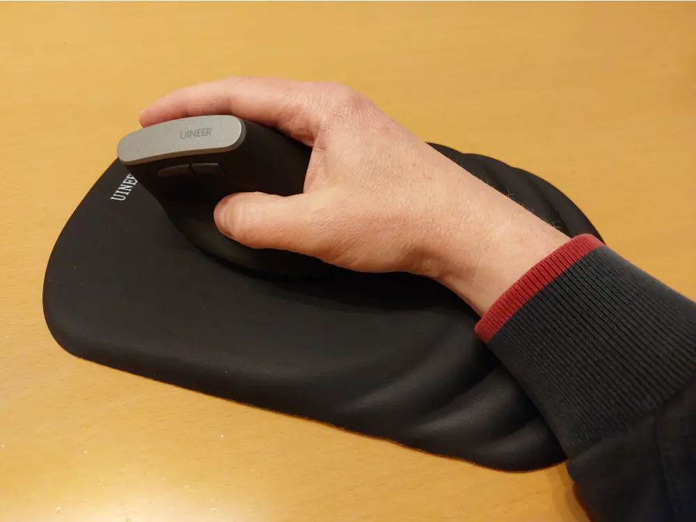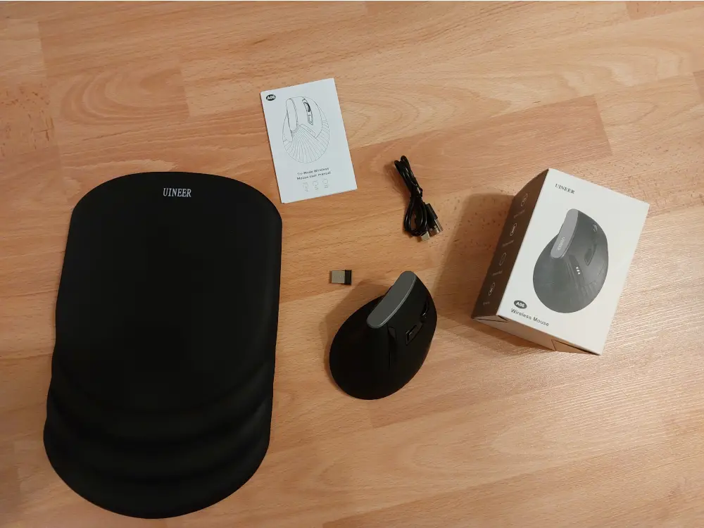 Wir schauen uns eine kabellose Vertikal-Maus der Firma Uineer an. Nicht direkt im Lieferumfang enthalten, aber ebenfalls vom gleichen Hersteller, ist ein angenehm ergonomisches Mauspad mit Handballenauflage.