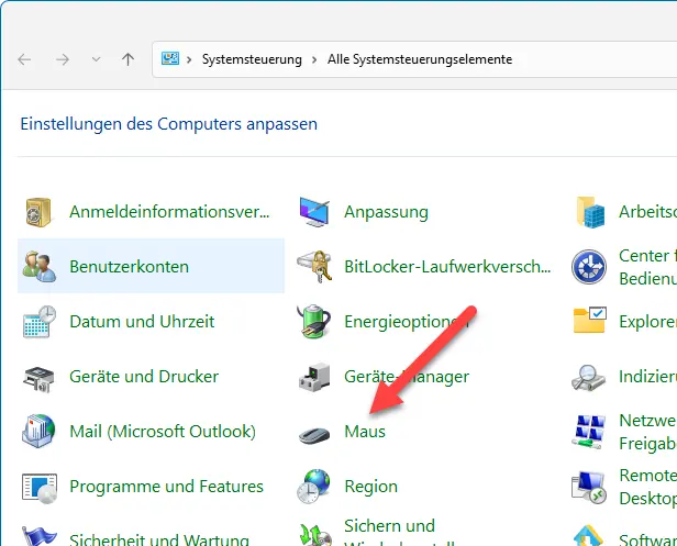 In der Systemsteuerung können wir jetzt den Cursor konfigurieren.