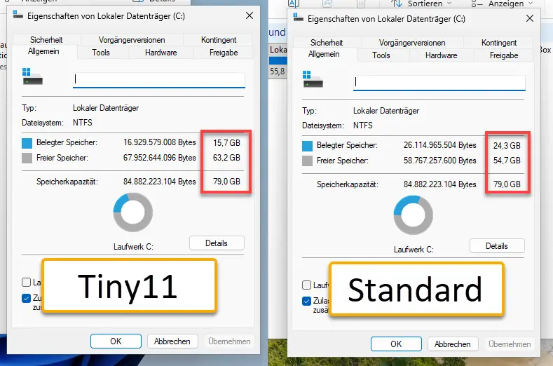 Tiny11 vs. Windows 11, weniger Apps, mehr freier Speicher
