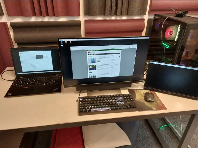 Die meisten dürften heutzutage mit Laptop unterwegs sein. Mir geht es so, unterwegs lässt sich darauf leidlich arbeiten, zumindest bestimmte Dinge. Aber am heimischen Schreibtisch, habe ich dann doch gerne mehrere Bildschirme, Tastatur, Netzwerk, Maus und anderen Kram.