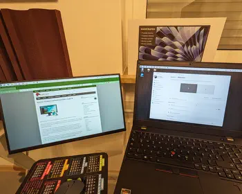 USB-C Display mit integriertem Akku und kabelloser Bildübertragung, für Laptop, Desktop, Smartphone und Tablett.